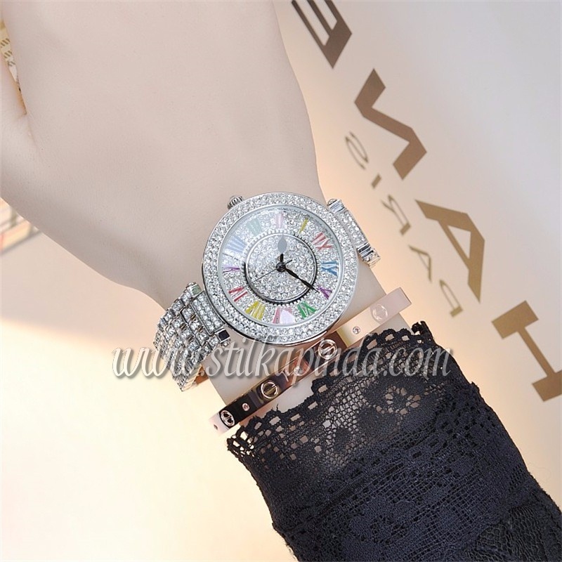 Renkli Romen Taşlı Paslanmaz Çelik Saat