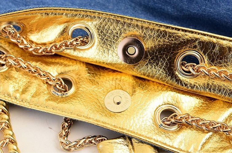 Parlak Zımbalı Denim Omuz Çantası ile günlük stilinize cesur bir dokunuş katın! Kot ve polyester dış kumaş üzerine serpilen altın sarısı zımba ve elmas detayları, çantayı adeta parıldayan bir aksesuara dönüştürüyor. 30 cm uzunluk ve 20 cm yükseklikle pratik hacim sunan bu parça, altın sarısı zincir askısı ve boncuk süslemeli sıkıştırma detayıyla hem omuz hem çapraz kullanım kolaylığı sağlar. Hakiki deri iç astar yumuşak dokusuyla eşyalarınızı korur, fermuarlı kapak güvenli taşıma imkanı verir. Kotun casual havası zımbaların rock enerjisiyle buluşuyor, farklı renk seçenekleri (kırmızı, pembe, altın, gümüş) her tarza uyum sağlar. Parlak detaylar ışık altında göz kamaştırır, çantanın ön yüzeyindeki yoğun süsleme her açıdan dikkat çeker. Bu çanta, sade kombini anında yükselten iddialı bir parça, feminen ama asi bir vibe yaratır.