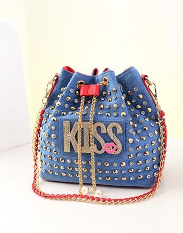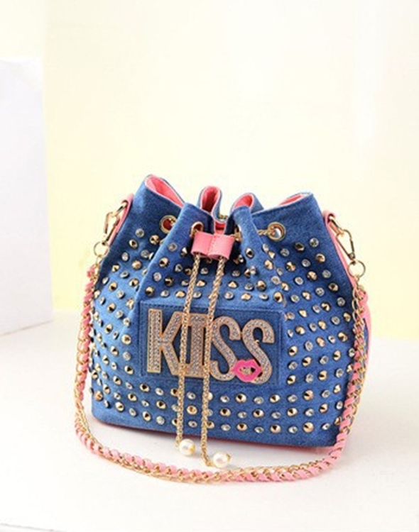 Rock-Chic Sparkle Taş Süslemeli Denim Çanta